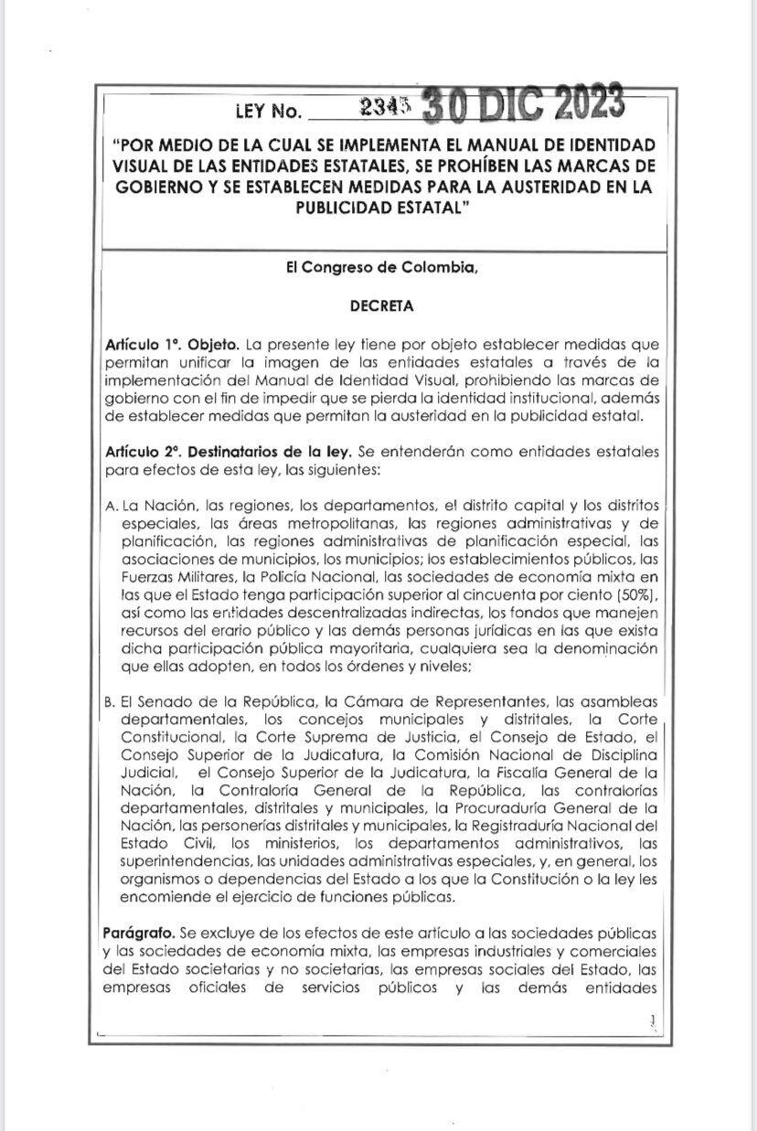 El pasado 5 de enero, el presidente Gustavo Petro sancionó la Ley 2345 del 30 de diciembre de 2023, también conocida como la “Ley Chao Marcas de Gobierno”.