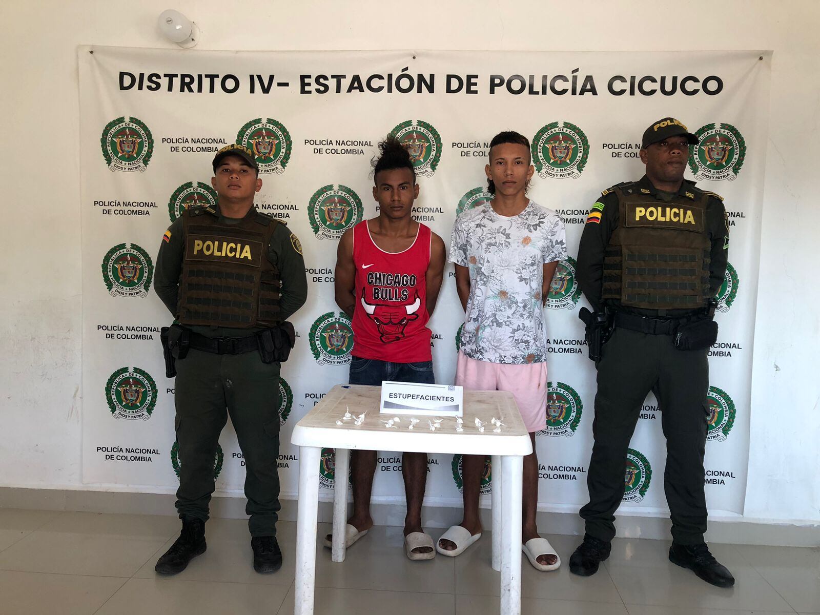Precisamente, gracias a esa estrategia unidades del Modelo Nacional de Vigilancia Comunitaria por Cuadrantes de la Estación de Policía de Cicuco capturaron en las últimas horas, a dos presuntos delincuentes, de 22 y 23 años respectivamente conocidos en el bajo mundo con los alias de los ‘Moñones’, que pretendía comercializar más de 53 dosis de base de coca.