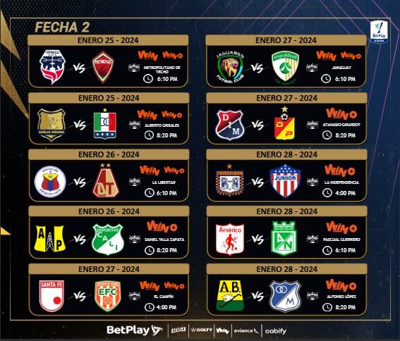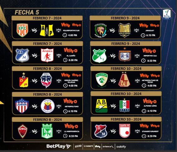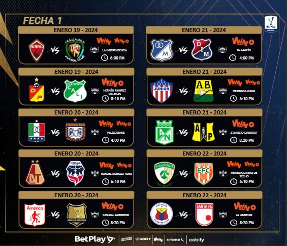Este miércoles 10 de enero, la Dimayor hizo oficial las fechas, horas y escenarios de las primeras cinco jornadas, dejando un abrebocas del intenso calendario que tendrán que afrontar los equipos durante esta temporada.