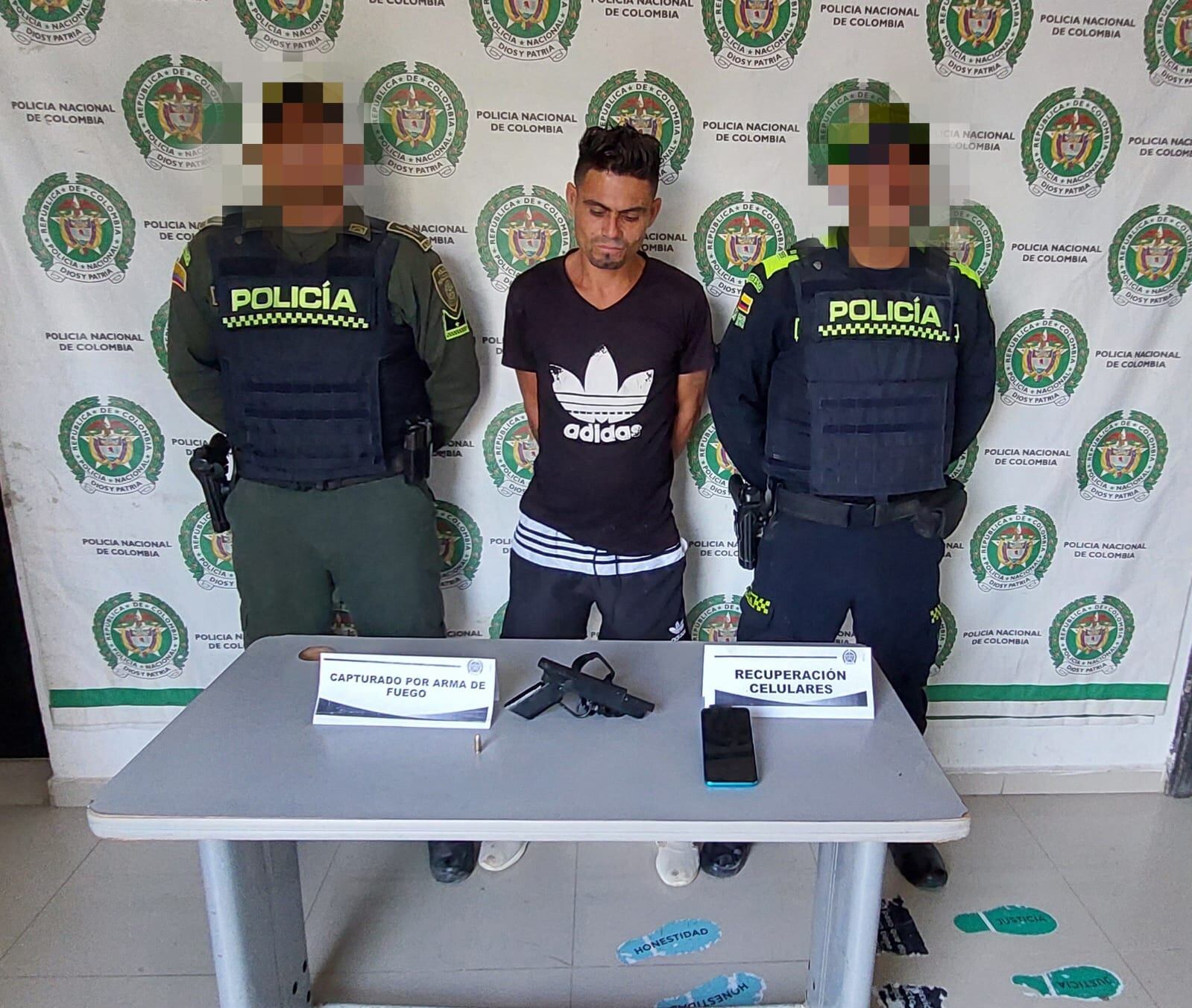 A “antibiotico” le hallaron en su poder un arma de fuego tipo artesanal con un cartucho para la misma y el celular que minutos antes le había hurtado a su víctima. Éste fue dejado a disposición de la autoridad competente por el delito de tráfico y porte de armas de fuego. Se espera que en los próximos días un juez de la República defina su situación judicial.