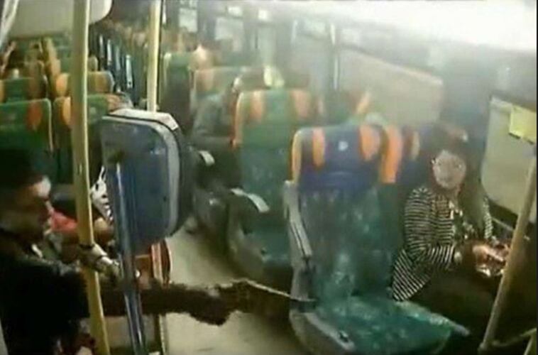 En un video obtenido de la cámara del bus, se ve cómo los dos hombres ingresan al vehículo y empiezan a intimidar con arma de fuego a los pasajeros.