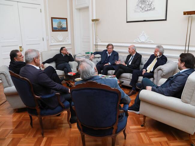 El presidente Gustavo Petro se reunió hoy con los empresarios Carlos Gallego, Jorge Mario Velásquez, Gonzalo Pérez, Jaime Gilinski y Gabriel Gilinski, un encuentro en medio del proceso de intercambio de acciones entre Sura y Nutresa.