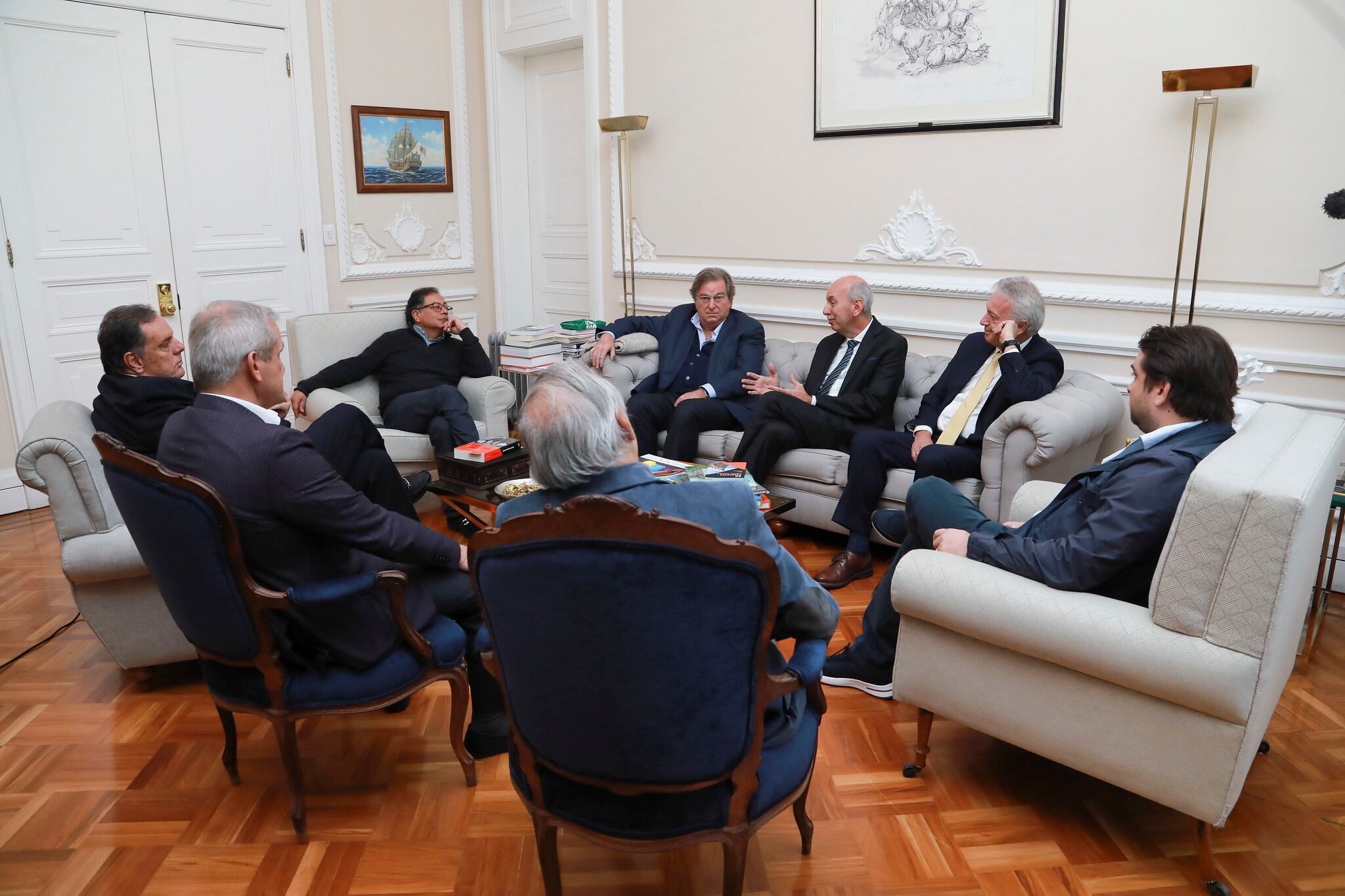 El presidente Gustavo Petro se reunió hoy con los empresarios Carlos Gallego, Jorge Mario Velásquez, Gonzalo Pérez, Jaime Gilinski y Gabriel Gilinski, un encuentro en medio del proceso de intercambio de acciones entre Sura y Nutresa.