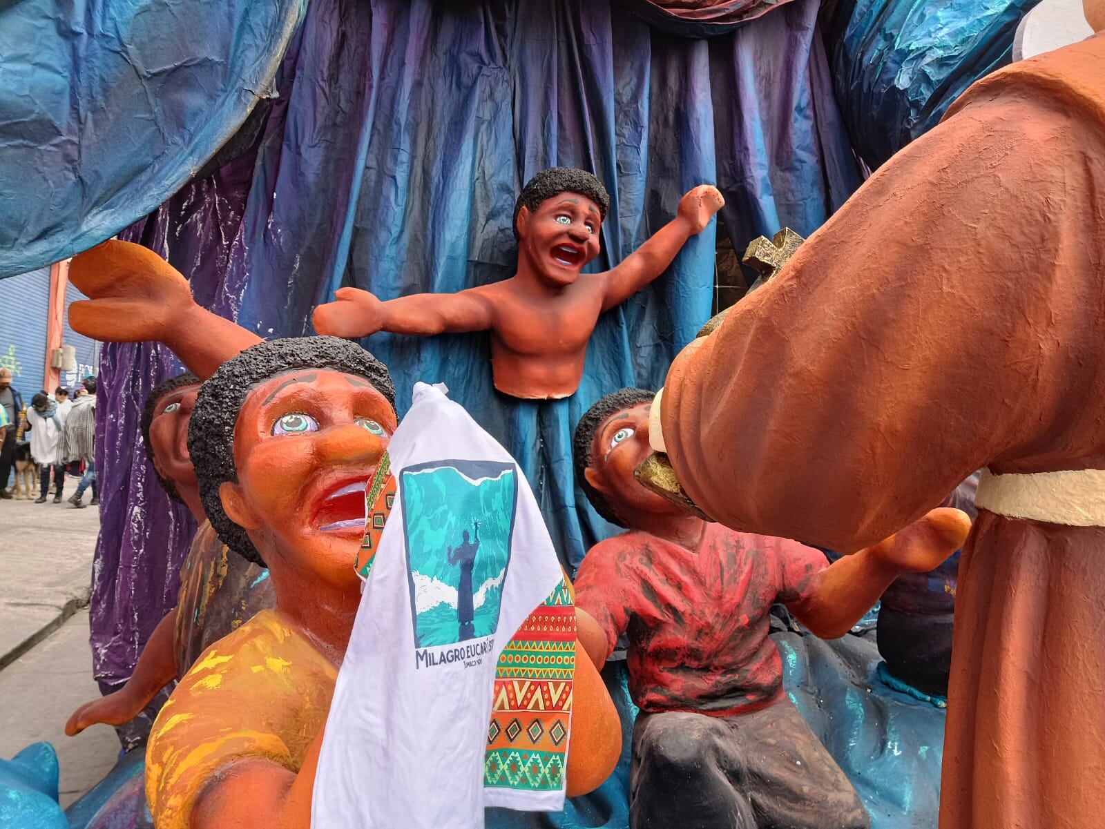 La obra del maestro Ramos puso en la escena del Carnaval de Negros y Blancos, uno de los episodios más emblemáticos para los tumaqueños especialmente para los católicos, que con el paso de las generaciones han ido guardando en su memoria lo ocurrido un 31 de enero de 1906 cuando un tsunami puso a temblar el litoral pacífico y amenazaba con borrar a Tumaco, los habitantes vieron en ese entonces cómo el mar ya había retrocedido un kilómetro de la playa y una ola de más de cinco metros se aprestaba a llegar a la costa anticipando una gran tragedia.