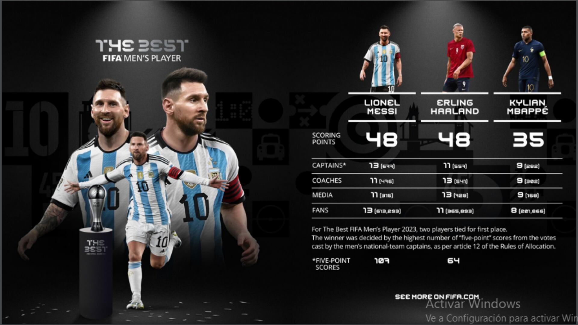 Además, en redes sociales se filtró el resultado final de las votaciones, evidenciando un empate a 48 puntos entre Haaland y Messi, sin embargo, sería el argentino el ganador debido al desempate por mayor número de votos de capitanes en el mundo.