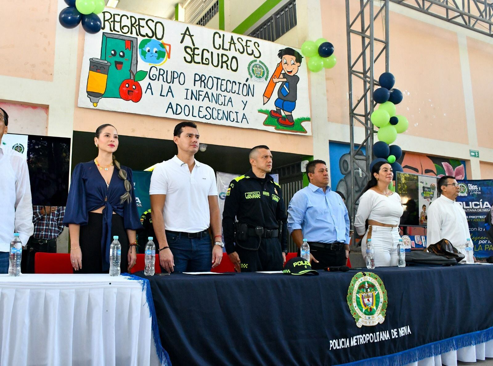Durante el evento de apertura de regreso de clases, la Policía Metropolitana de Neiva llevó a cabo la entrega representativa de un kit escolar a estudiantes.