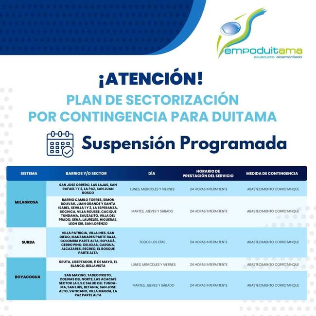 La crisis por desabastecimiento de agua en Duitama empieza a agudizarse, las autoridades informaron que empezó el Plan de sectorización por contingencia, comunidad afirma que en algunos sectores sólo tienen prestación de servicio de agua, tres horas al día.