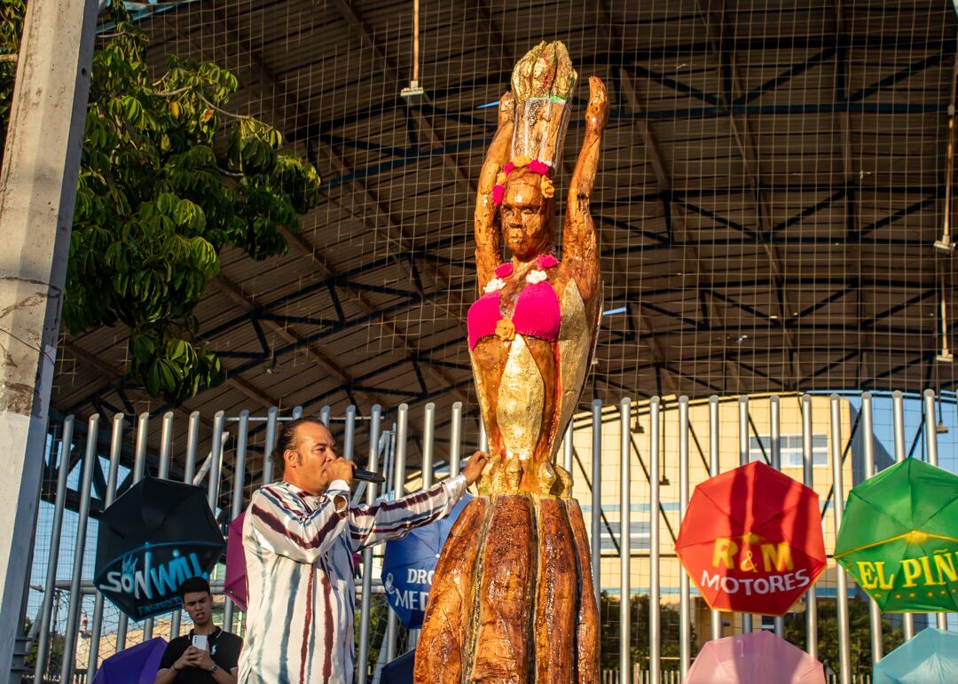 En el barrio España vieron por primera vez la escultura La Apolillada, del artista Rudy Pérez Doria, artesano, escultor y artista plástico quien develó la obra elaborada en madera y que hace homenaje a Pola Becté.