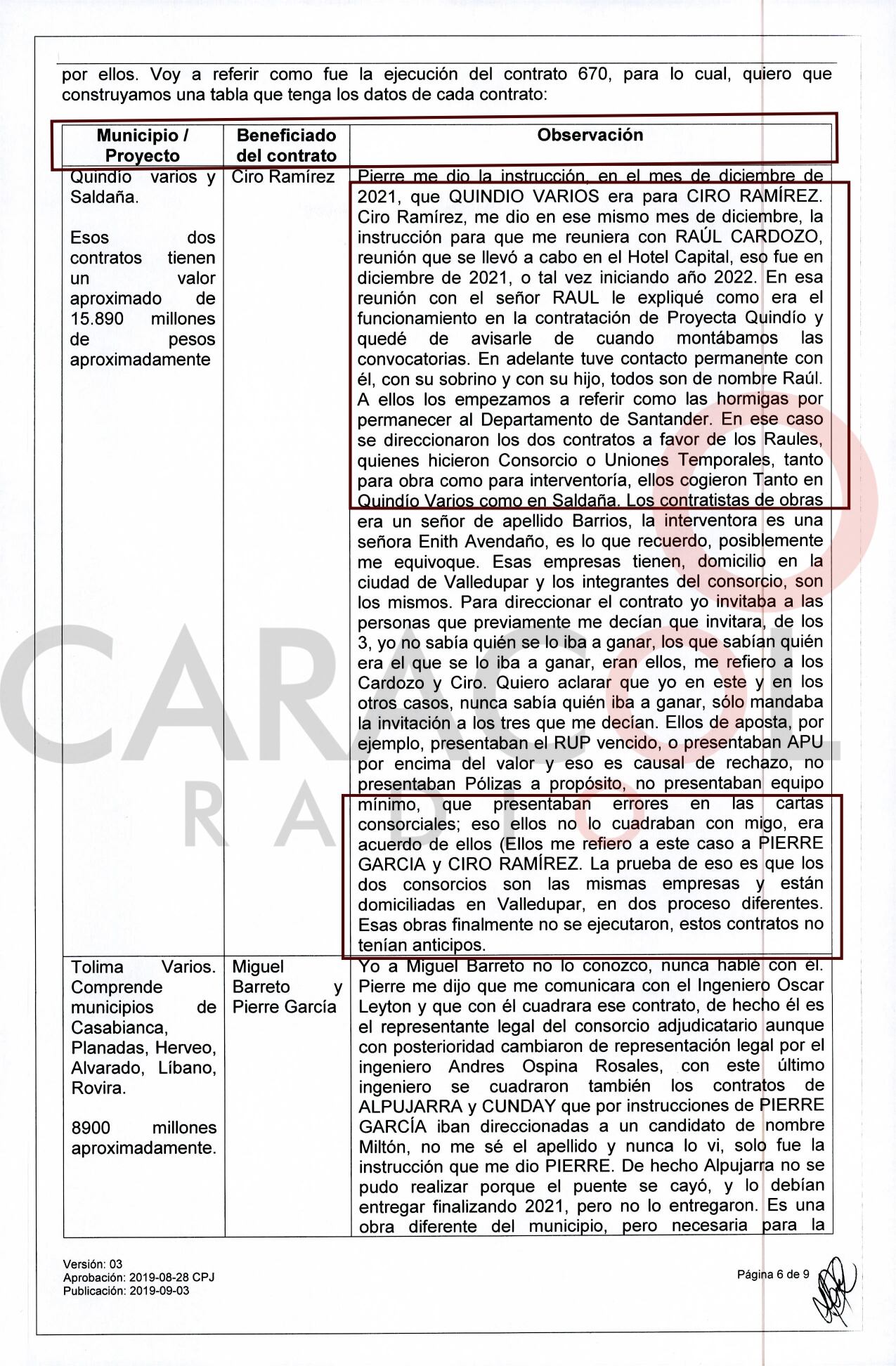 En los informes de Policía judicial y en el interrogatorio que rindió Pablo César Herrera, el exgerente de Proyecta Quindío, y hoy testigo principal de la Fiscalía y de la Corte Suprema, aparece que al trío de “Raúles”, fueron referidos por el senador Ciro Ramírez.