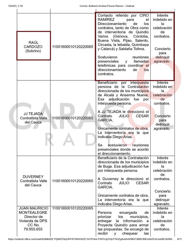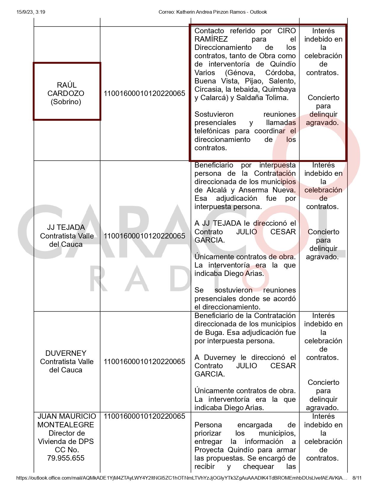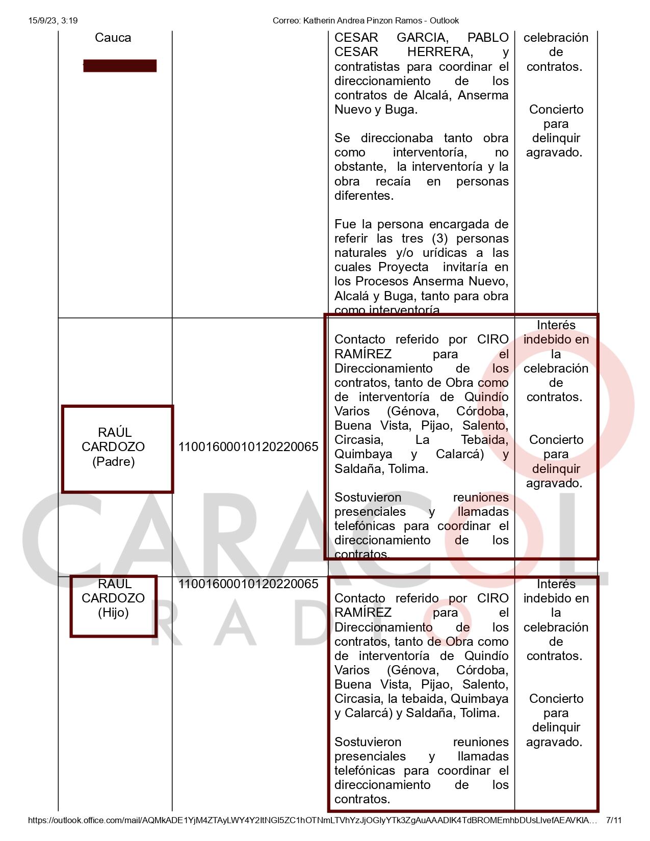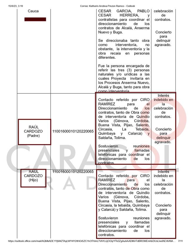 Se trata de Raúl Alfonso Cardozo Ordoñez; Raúl Alfonso Cardozo Nuncira; Raúl Eduardo Cardozo Navas. De este último, en el “roscograma” de la corrupción que elaboró la Fiscalía, aparece que tiene una condena vigente.