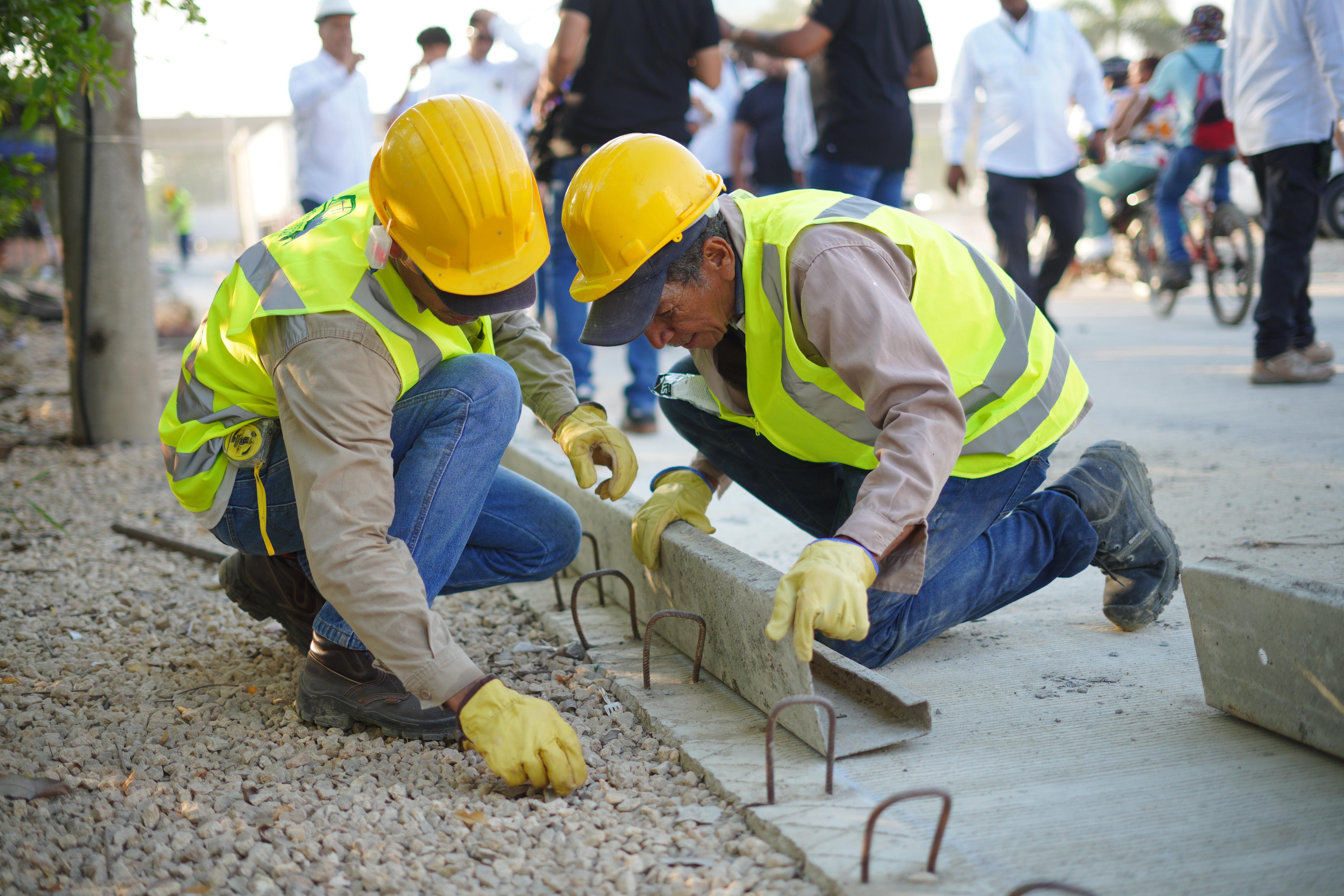 Con el equipo de trabajo que avanza en las obras de la calle de La Lengua, en el barrio Los Calamares, el alcalde Dumek Turbay precisó que “es es positiva la manera en que se está llevando el proceso”. La entrega de esta calle está programada entre finales de febrero e inicios de marzo.
