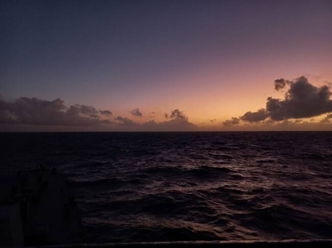 Durante casi 40 horas, la fragata colombiana, que abordó Caracol Radio, navegó en condiciones marítimas favorables: bajo el intenso sol y el cielo estrellado con la tenue luna. Muy puntual, en el amanecer, el ARC ‘Almirante Padilla’ y el buque jamaiquino ya estaban listos para iniciar las operaciones conjuntas. Ambos están a una distancia entre 60 a 80 yardas.