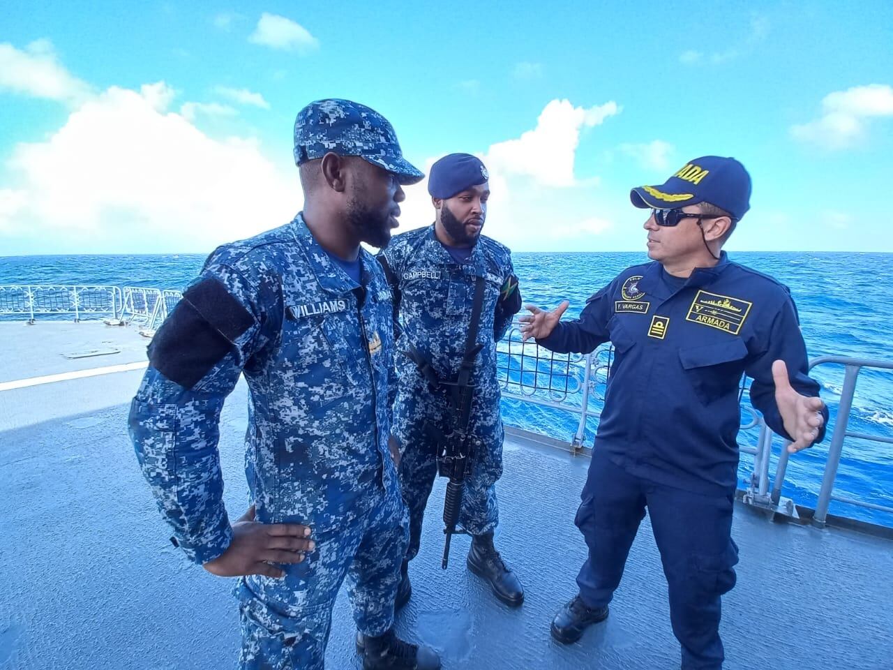 Antes del ejercicio naval, a la fragata embarcó un grupo de militares jamaiquinos. Se mostraron asombrados de las capacidades de la Armada para realizar operaciones contra el crimen trasnacional y mostraron su complacencia por la hospitalidad de los marinos colombianos.