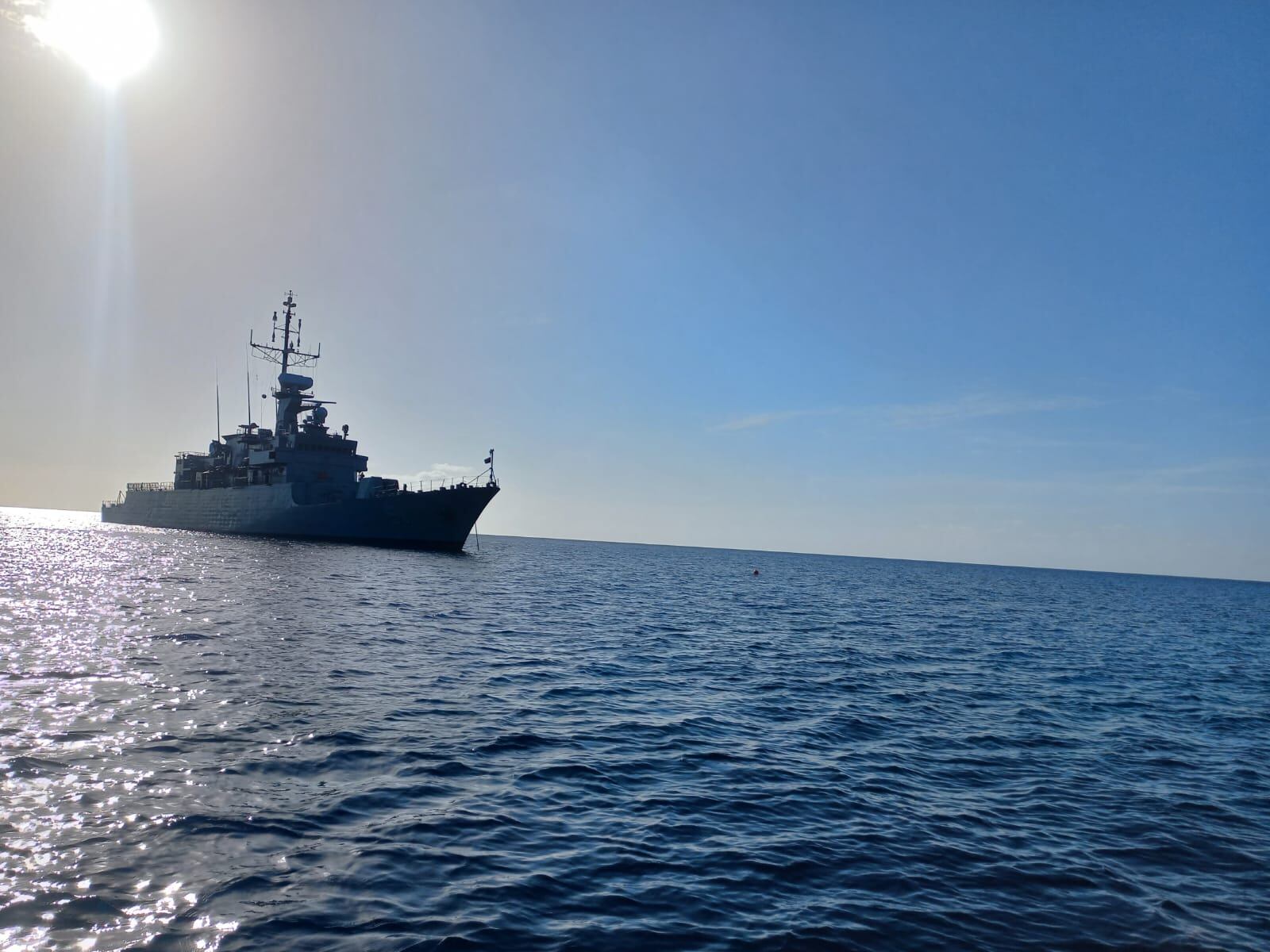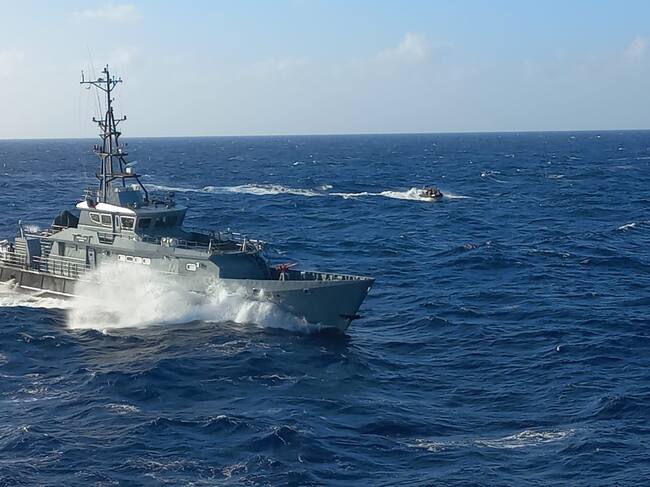 Durante casi 40 horas, la fragata colombiana, que abordó Caracol Radio, navegó en condiciones marítimas favorables: bajo el intenso sol y el cielo estrellado con la tenue luna. Muy puntual, en el amanecer, el ARC ‘Almirante Padilla’ y el buque jamaiquino ya estaban listos para iniciar las operaciones conjuntas. Ambos están a una distancia entre 60 a 80 yardas.