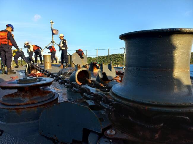 “Buenas tardes, mi capitán. 2024, año del azul que nos une”, saludaron los marineros a su comandante, Farid Vargas, antes de iniciar la navegación desde el puerto de la isla de San Andrés hasta el área de régimen común pactada en 1993 con Jamaica, país anfitrión del evento militar.