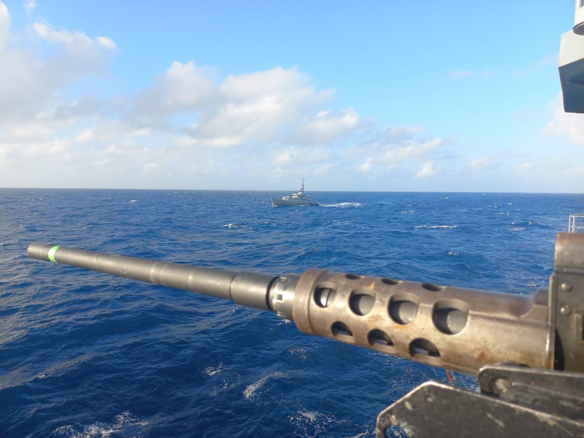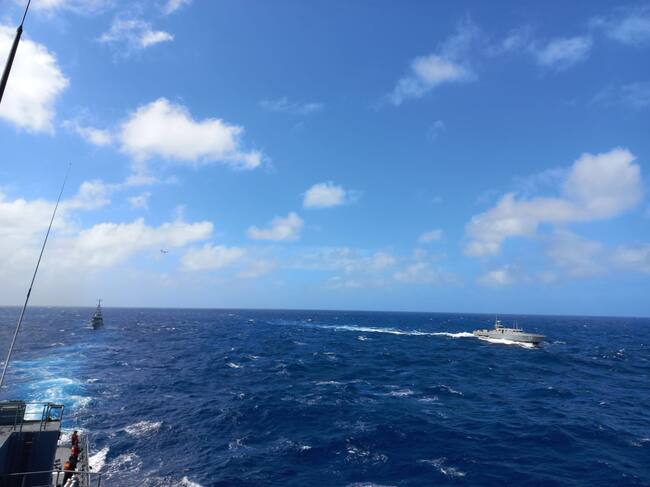 Desde la fragata ARC 'Almirante Padilla' se aprecian los buques de Jamaica y República Dominicana. Cortesía: Luis Ernesto Caicedo, Caracol Radio