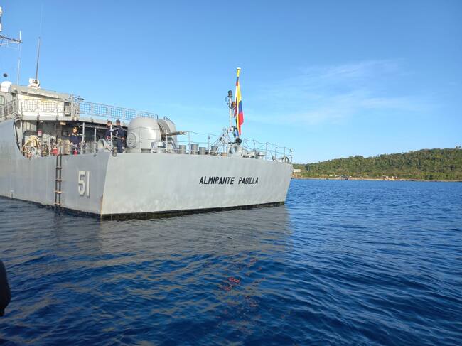 Fragata ARC 'Almirante Padilla' en San Andrés. Cortesía: Luis Ernesto Caicedo, Caracol Radio.