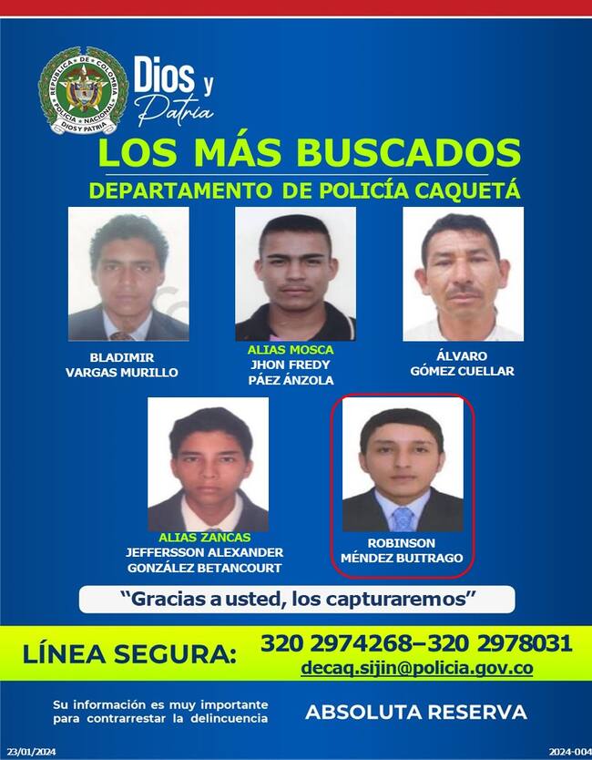 Después de ser publicado este cartel, la Seccional de Investigación Criminal recibió información ciudadana y así dieron con el paradero de Robinson Méndez quien presentaba orden de captura vigente por el delito de homicidio agravado. Además, presenta varias investigaciones por el delito de hurto, actor recurrente del delito.