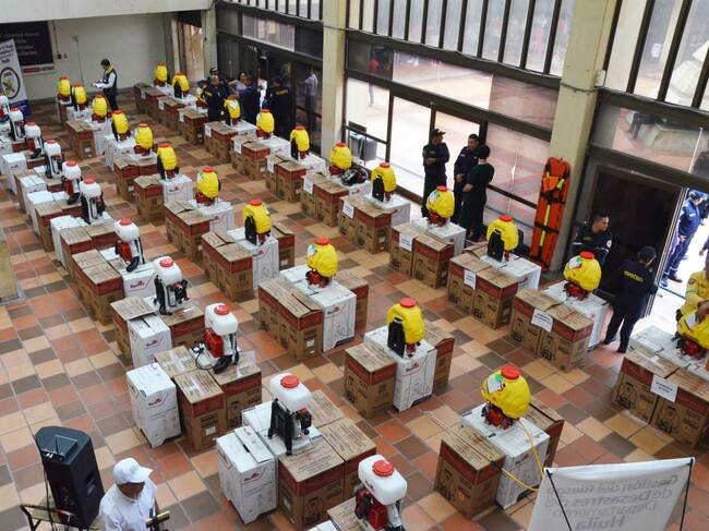 Los cambios climáticos que afectan a gran parte del territorio como lo es el fenómeno del niño ha permitido que se entreguen diferentes herramentales tales como: 156 bombas de aspersión a motor hacen parte del paquete de la primera entrega gestionada por la Gobernación del Huila desde el Fondo Departamental para la Gestión del Riesgo de Desastres y el Sistema General de Regalías Propias.