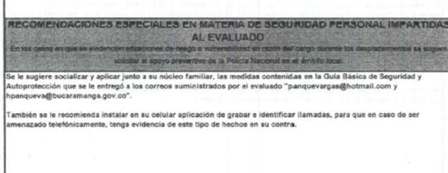 Incluso, la UNP ya le negó el servicio de acompañamiento con escolta al gerente en su anterior cargo como coordinador de aseguramiento legal área metropolitana de Bucaramanga. En el documento se lee que las autoridades locales consultadas, indicaron no conocer alguna situación de riesgo contra la integridad y seguridad personal del evaluado y el proceso fue archivado en abril del 2019 por “atipicidad en la conducta”. En este caso se tomaron medidas como un botón de pánico y un chaleco blindado.