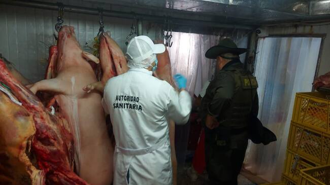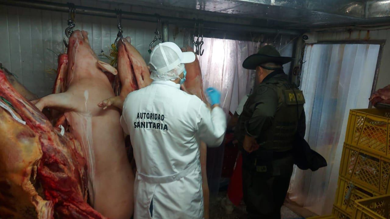 La Policía Metropolitana de Neiva, en las últimas horas realizó la incautación de carne de cerdo en canal, que no contaba con el correcto manejo y continuidad de su cadena de frío.