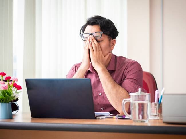 Hombre estresado mientras está en el trabajo (Getty Images) / Yasser Chalid