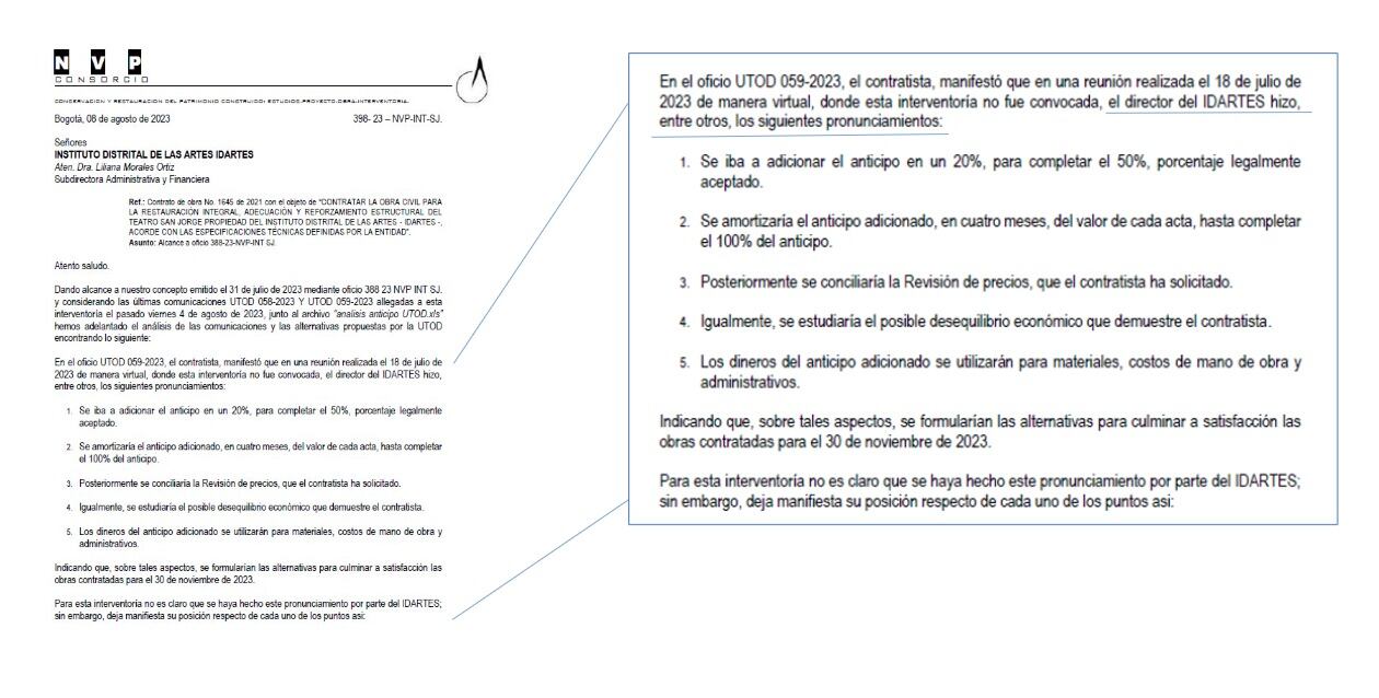 “En el caso del teatro San Jorge, una construcción ubicada en la localidad de los Mártires que supera los $14.024 millones, hubo reiteradas modificaciones, prórrogas, suspensiones y adiciones desde la fase de diseños y estudios”, señaló.