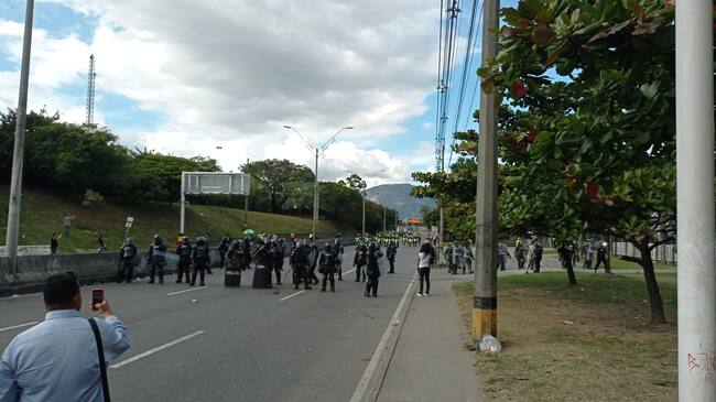 Se reportan choques entre manifestantes y fuerzas de la ley en la calle Barranquilla, a la altura de la portería de la Universidad de Antioquia