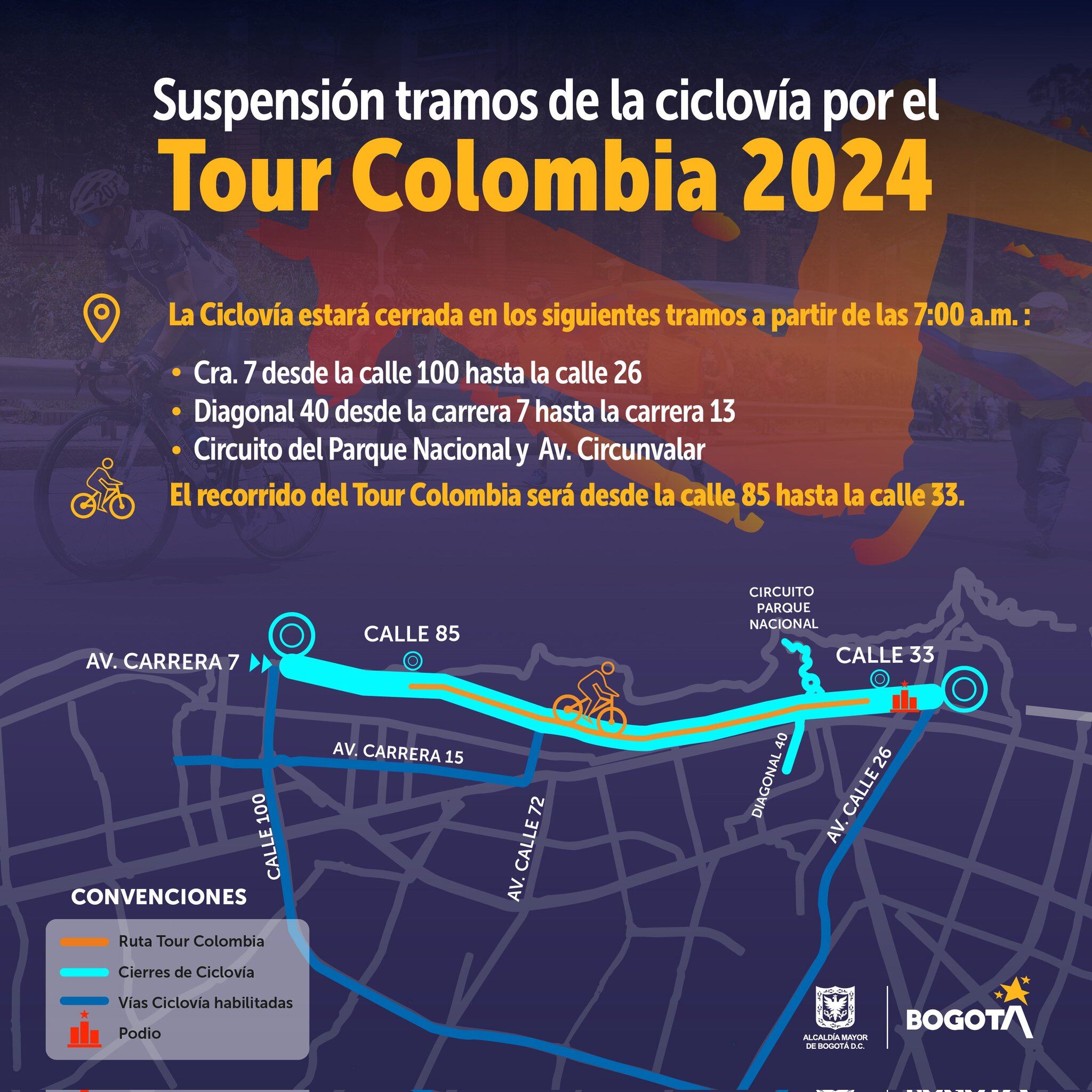 El próximo domingo 11 de febrero los competidores del Tour Colombia pasarán por Bogotá. Por esta razón le contamos los cierres viales que tendrá la ciudad.