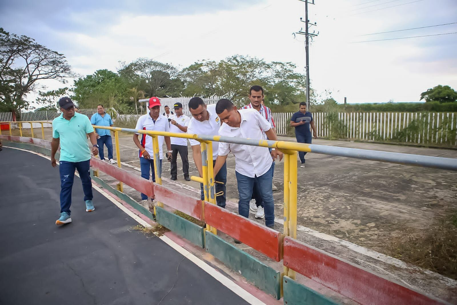 El gerente de Iderbol, Ariel Zambrano Meza, junto al alcalde de San Pablo, Jair Acevedo, y el equipo de infraestructura del Instituto, hicieron un recorrido por la emblemática pista de patinaje Elías del Valle, para verificar sus condiciones, y evaluar las mejoras que necesita el escenario para el uso de los deportistas del municipio.
