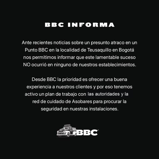 Desde la Cervecería BBC aseguraron mediante un comunicado que el hecho no ocurrió en una de sus instalaciones. Los dos robos se dieron en un restaurante y en una cervecería que no es de la marca.
