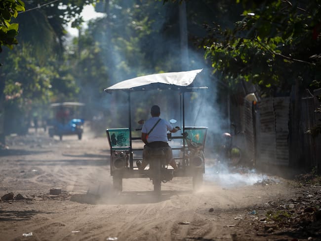 ACOMPAÑA CRÓNICA: EL SALVADOR PANDILLAS - AME8827. ISLA ESPÍRITU SANTO (EL SALVADOR), 13/02/2024.- Sandra Leticia Hernández, de 42 años, maneja su moto-taxi el 5 de febrero de 2024, en la Isla Espíritu Santo (El Salvador). La isla Espíritu Santo era un remanso de paz en un país, El Salvador, donde las pandillas o maras habían impuesto el terror y la violencia con asesinatos y extorsiones. Pero llegó el régimen de excepción del presidente Nayib Bukele para luchar contra esas agrupaciones, y de pronto una serie de llamadas y acusaciones "falsas" empujó a una veintena de isleños a la cárcel por "colaboradores". EFE/ Bienvenido Velasco / Bienvenido Velasco (EFE)