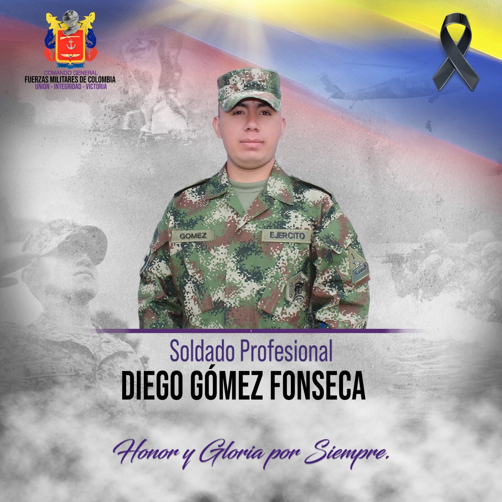 Se trata del uniformado Diego Gómez Fonseca, murió tras caer en un campo minado, instalado por ese grupo criminal. Dos más resultaron heridos y fueron trasladados hasta un centro médico. En estos momentos reciben atención.