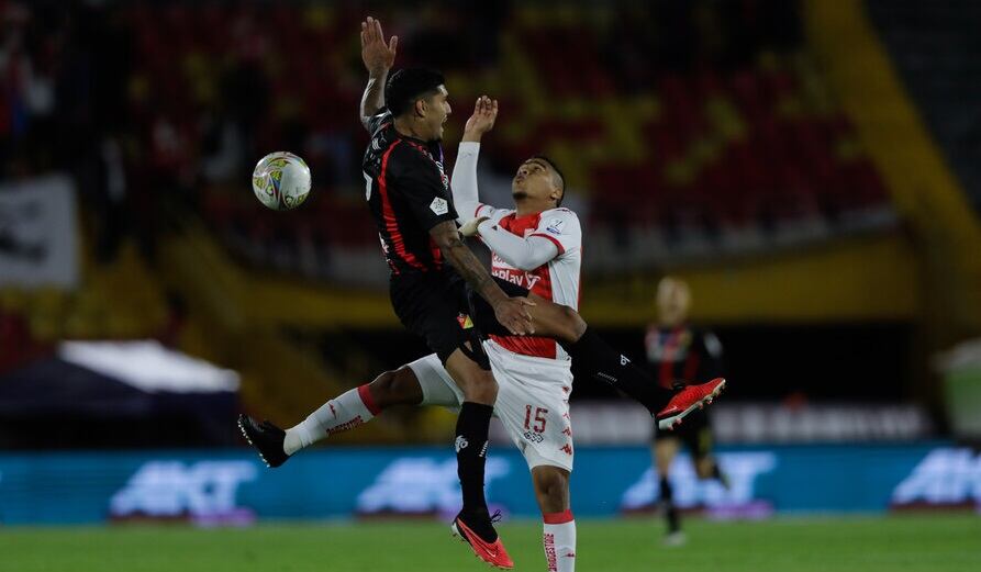 Gol anulado a Independiente Santa Fe por falta de Hugo Rodallega sobre el arquero Salvador Ichazo