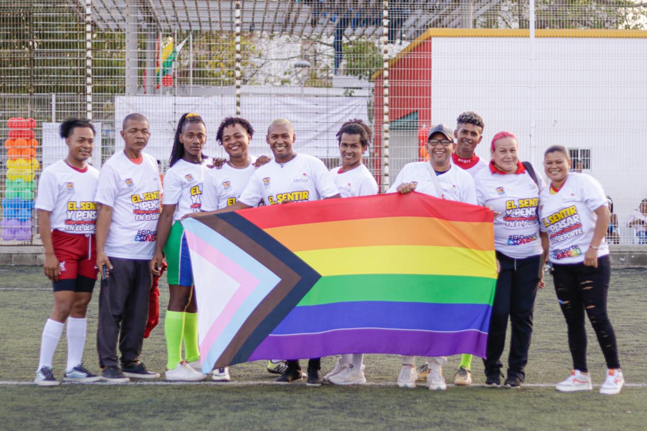 Bajo la consigna de “Sentir y pensar diferente no afecta tu rendimiento como deportista”, personas con Orientación Sexual e Identidades de Género Diversas de Bolívar, la Gobernación de Bolívar, liderada por el Gobernador Yamil Arana Padauí, conmemoró el Día Internacional contra la discriminación en el deporte, en las instalaciones de la Cancha del Templo Menor del Fútbol de Alameda La Victoria.
