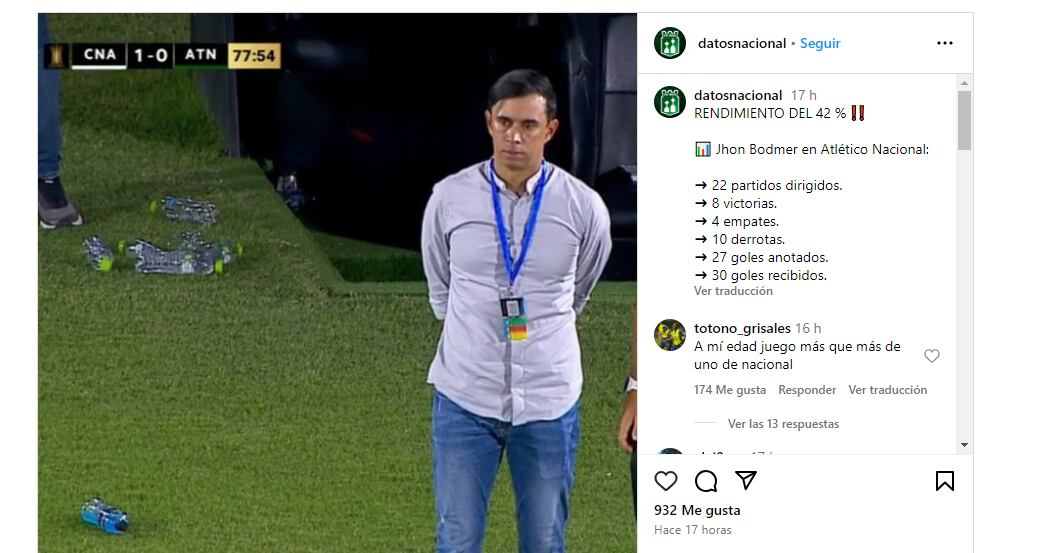 El comentario del exfutbolista se dio en una publicación de la cuenta de Instagram Stios Datos Nacional, en donde publicaron los números del entrenador bogotano Jhon Bodmer al frente del equipo Verdolaga.