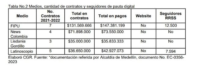 Además, confirma que a través de Telemedellín la Alcaldía dio millonarios contratos para pauta publicitaria a medios independientes, que ni siquiera tenían página web o seguidores importantes en redes sociales.