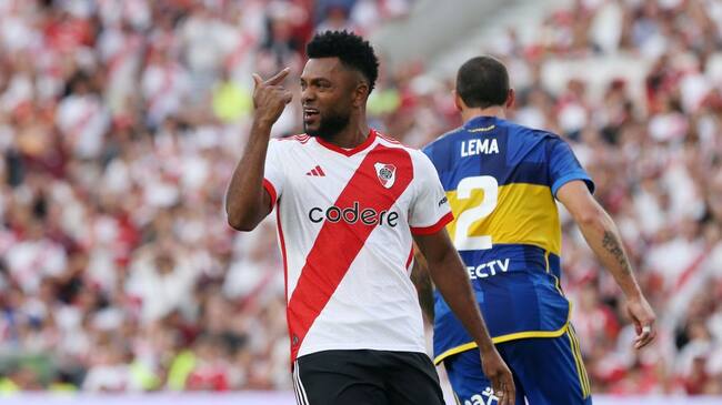 Miguel Borja durante el clásico de Argentina / Getty Images / Daniel Jayo