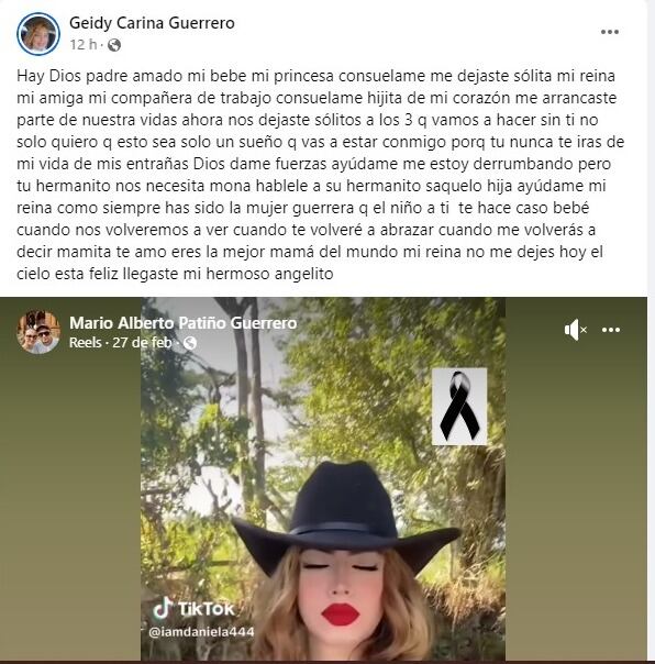 Geidy Carina Guerrero, mamá de la jovencita muerta expresó su dolor por redes sociales.