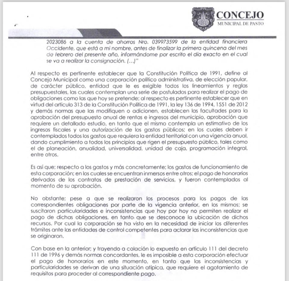 Qué pasó con más de $180 millones que no aparecen en la cuenta del Concejo de Pasto?