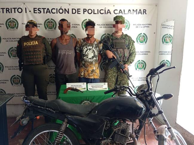 ‘Tabaquito’ y ‘Bonice’, capturados con moto ilegal y portando arma de fuego en Calamar