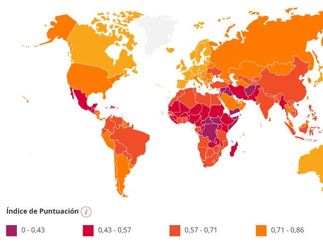Así es la calificación de Colombia en cada rubro en comparación a Dinamarca (primero del listado) y Afganistán (último en la lista).