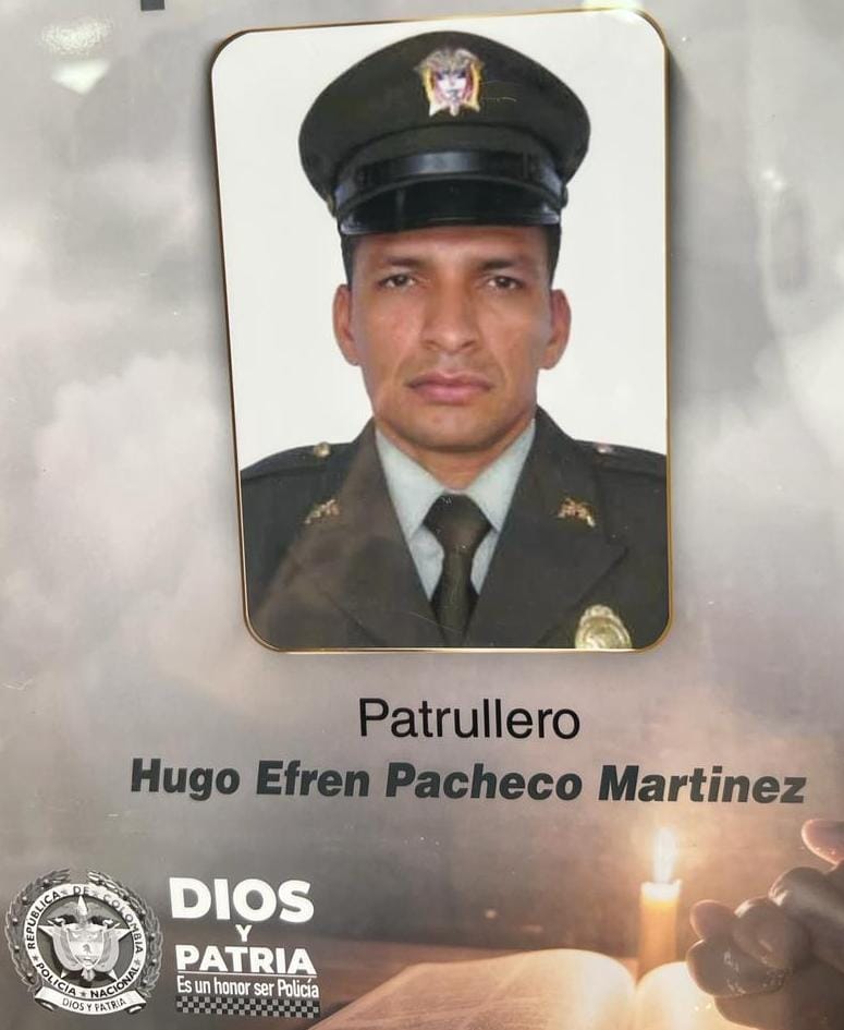 Subintendente Hugo Efrén Pacheco Martínez, falleció en hechos ocurridos en marzo del año 2016 en la finca La Emperatriz, en el departamento del Cauca.