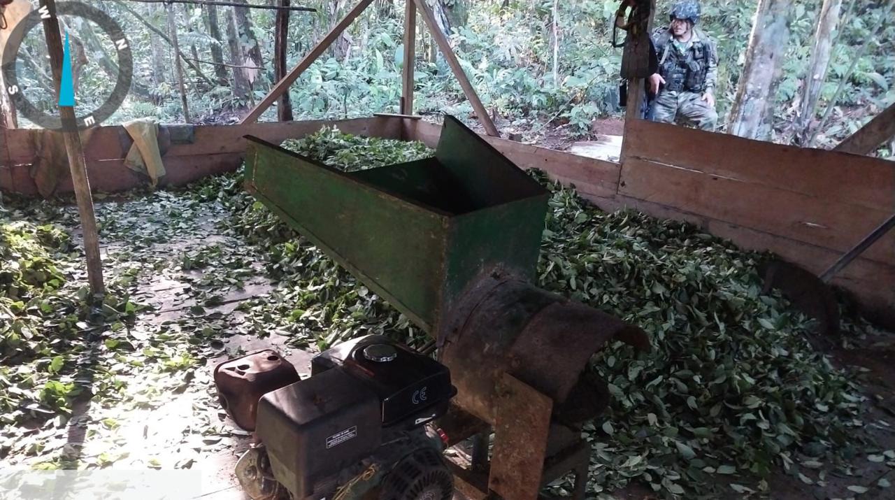 Durante la operación, se decomisaron 2700 galones de base de coca en solución, distribuidos en 80 canecas plásticas de 55 galones, así como 1650 galones de combustible, 1200 kilogramos de hoja de coca picada, 2 plantas eléctricas y 2 máquinas picadoras utilizadas en la producción del alcaloide.