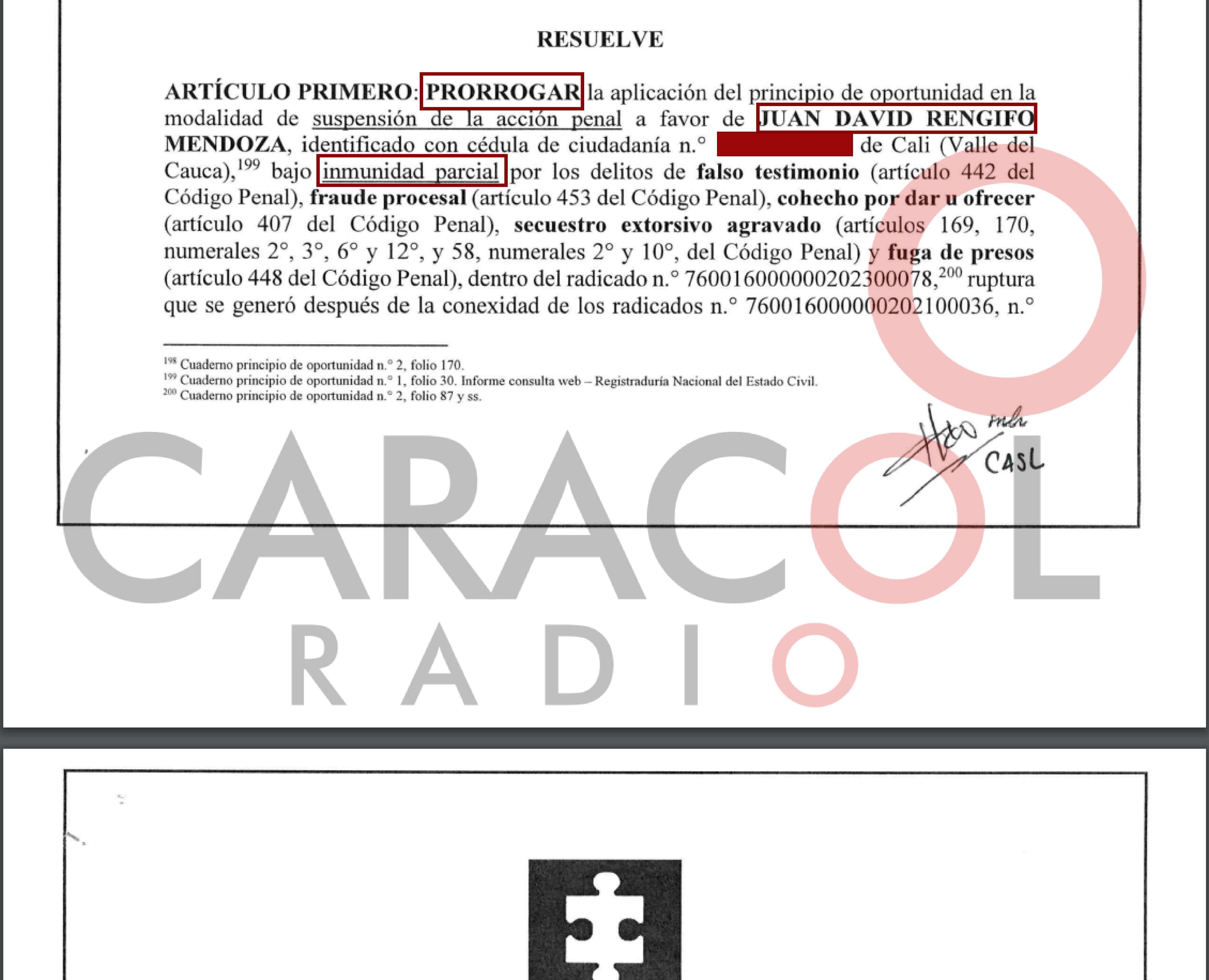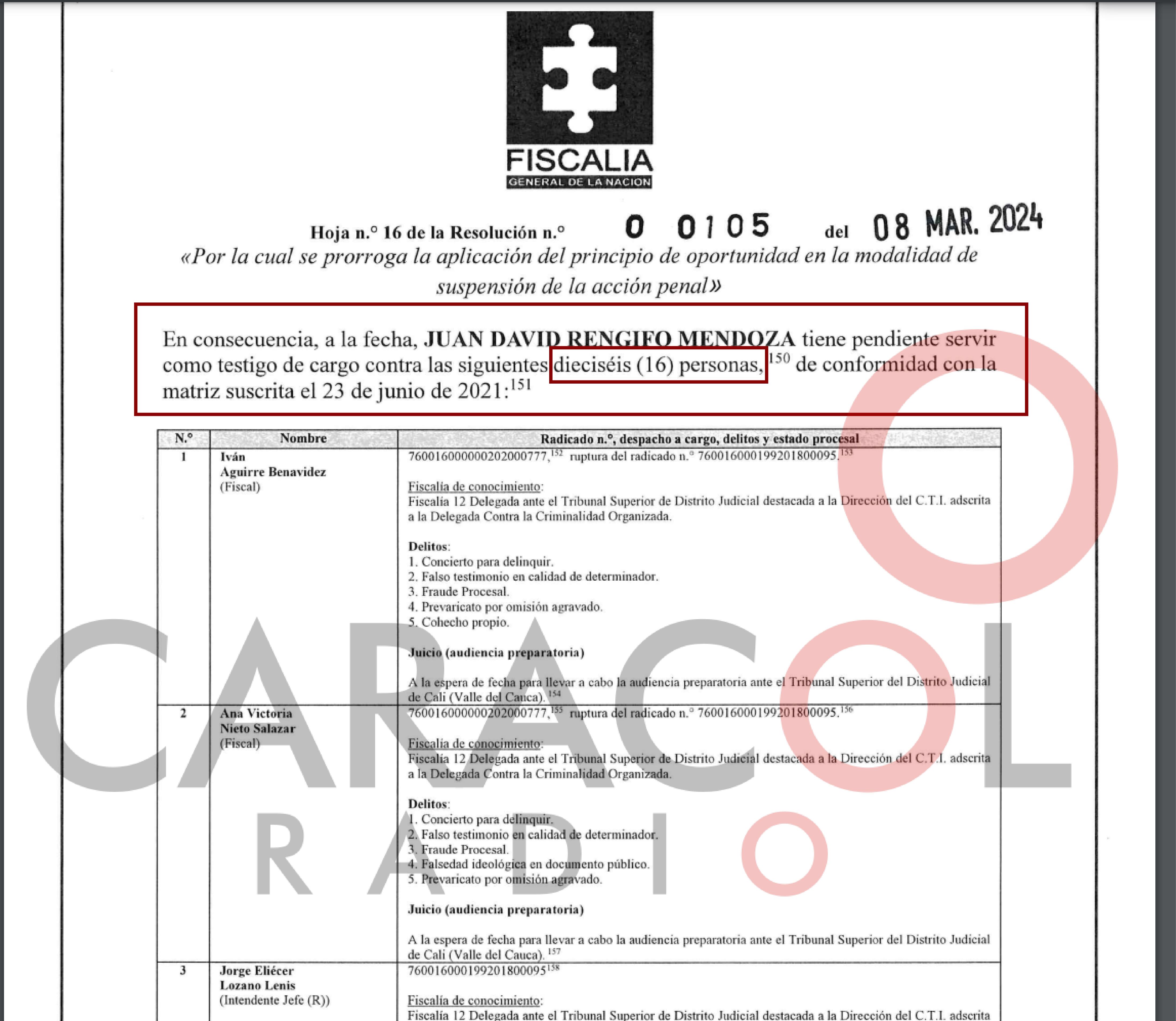 Tal y como lo ha informado Caracol Radio durante los últimos tres años, la Fiscalía le prorrogó el beneficio judicial al testigo, porque entregó información que ha permitido a la justicia judicializar a 23 presuntos integrantes de esa presunta red criminal.