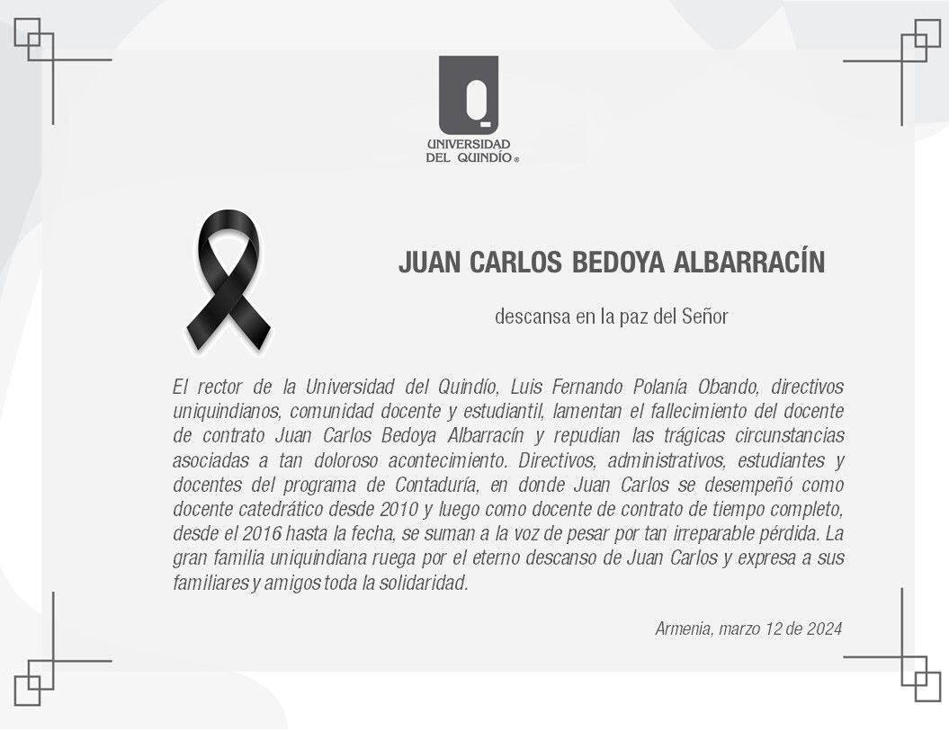 Ante estos hechos, Reinaldo Sierra Prieto, Decano Facultad de Ciencias Económicas, Administrativas y Contables de la Universidad del Quindío al rechazar el asesinato del docente hizo una semblanza del educador universitario