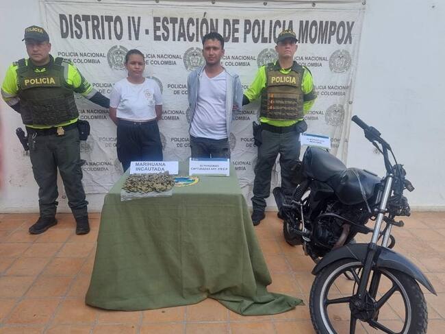 Capturan a motociclista y su parrillera transportando marihuana en Mompox, Bolívar
