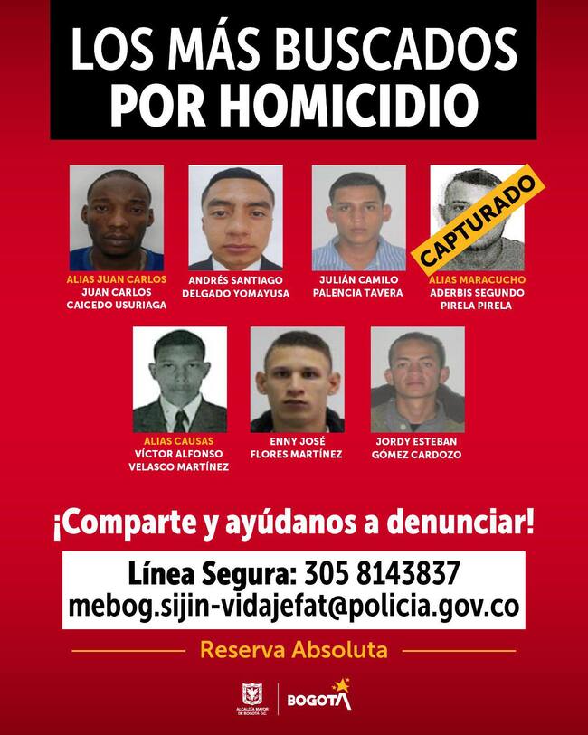 La Policía de Bogotá y la Secretaría de Seguridad revelaron el cartel de las personas más buscadas por diversos delitos en la capital como hurtos y homicidios.