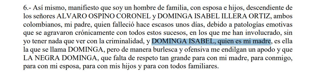 Álvaro Luis Ospino Illera, a quien le apodan “Negra Dominga” le pidió a la Fiscalía, la Procuraduría y hasta la Presidencia de la República que le certifiquen que él no está detrás de los asesinatos de integrantes de la banda criminal del ‘Clan Vega Daza’.
