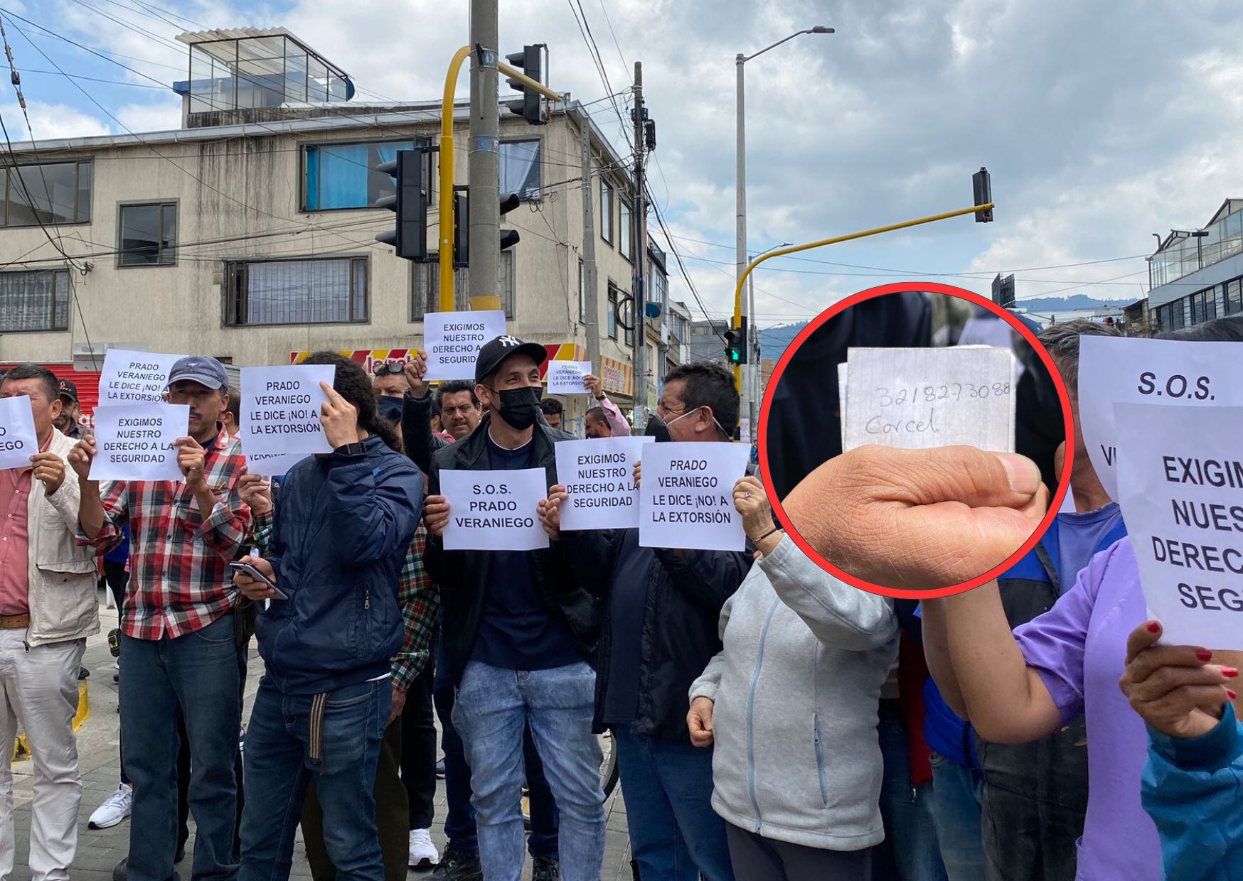 Este 18 de marzo comerciantes afectados por el delito de extorsión salieron a las calles del barrio Prado Veraniego en el Norte de Bogotá en forma protesta por la falta de atención por parte de las autoridades ante este fenómeno que se ha tomado el sector.